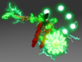Thunderblight Ganon appears alongside the other Phantom Ganons in Age of Calamity. It appears in the Scenario "Air and Lightning". Its appearance is different than in Breath of the Wild, as it now has Electrical orbs behind him and green weaponry.